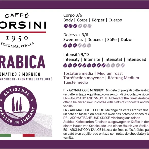 CAFÉ AROMATIQUE ET DOUX Mélange de café arabica avec des notes de caramel et de chocolat. Les notes aromatiques très nettes et marquées évoquent des fragrances fruitées suivies de souvenirs de caramel. La large gamme d'arômes aigres-doux et les tons agréablement aromatiques présentent une tasse de café très équilibrée et ronde. L'intensité des saveurs qui restera sur notre palais sera une agréable sensation de chocolat et des souvenirs de vanille.